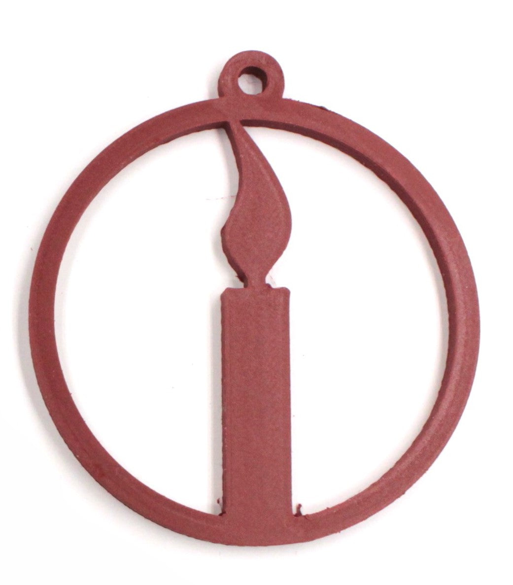 Alle dekorationerne er 5,5 cm i diameter med hul til f.eks. snor så de kan hænges på hver lys holder eller på kransen.